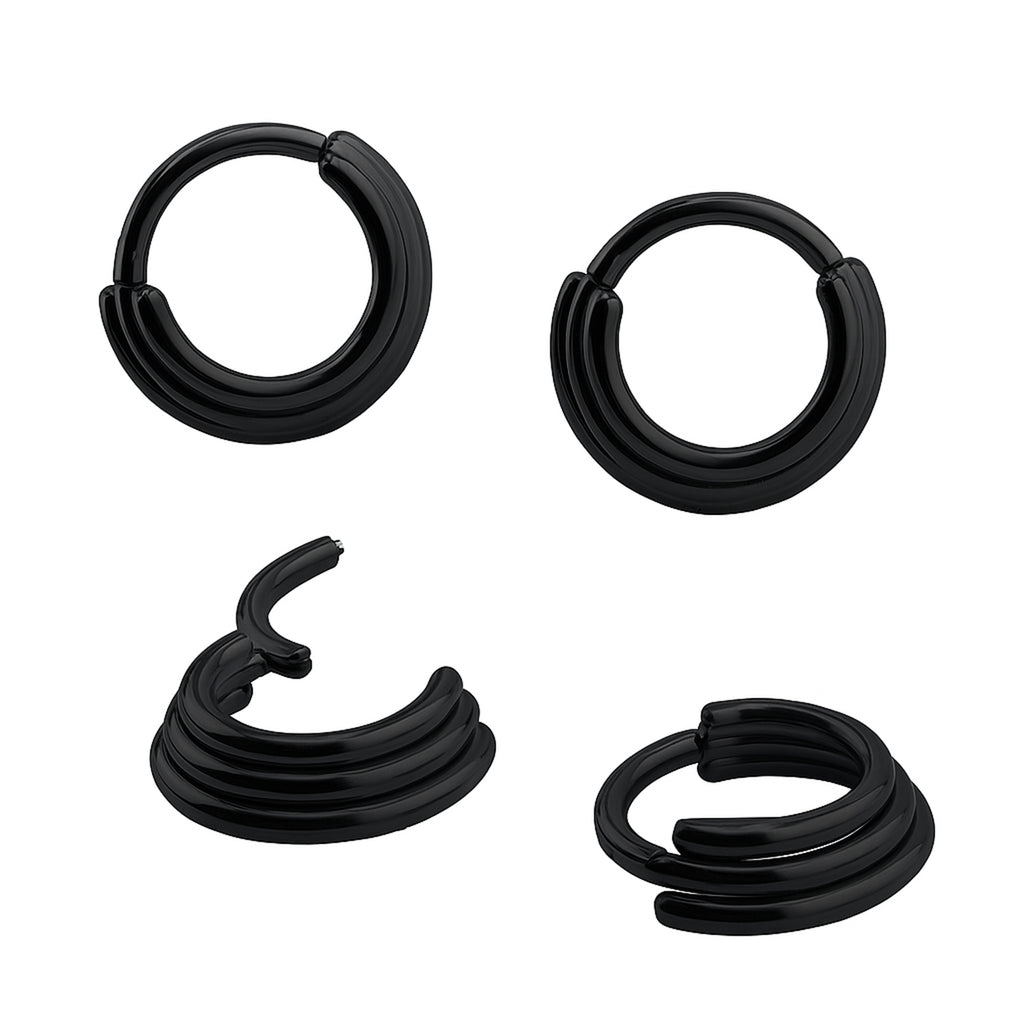 Steel 316L Segmentring Clicker in der Stärke 1.2mm im Fashion Design und schwarzer PVD Titan Beschichtung und einem Durchmesser von 8mm. Ideal für den Ersteinsatz oder zum Wiederverkauf.