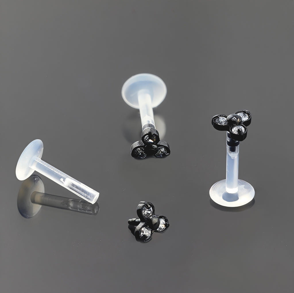 Push-in System mit Bioflex Labret und Steel 316L Aufsatz mit schwarzer PVD Titan Beschichtung im Kristall Design. Ideal zum Wiederverkauf und zur Kombination mit anderem Push-in Zubehör der selben Stärke.