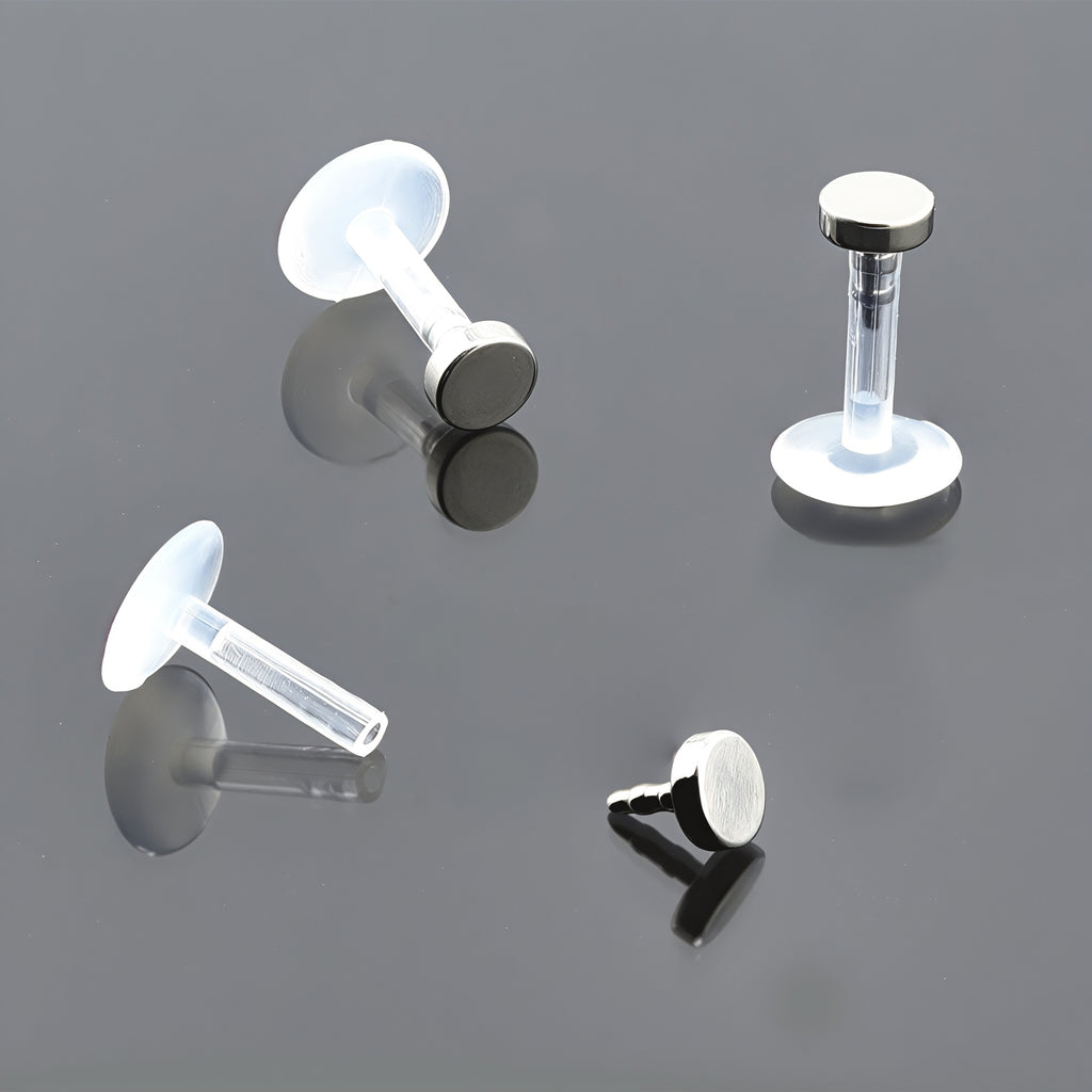 Push-in System mit Bioflex Labret und Steel 316L Top. Ideal zum Wiederverkauf und zur Kombination mit anderem Push-in Zubehör der selben Stärke.