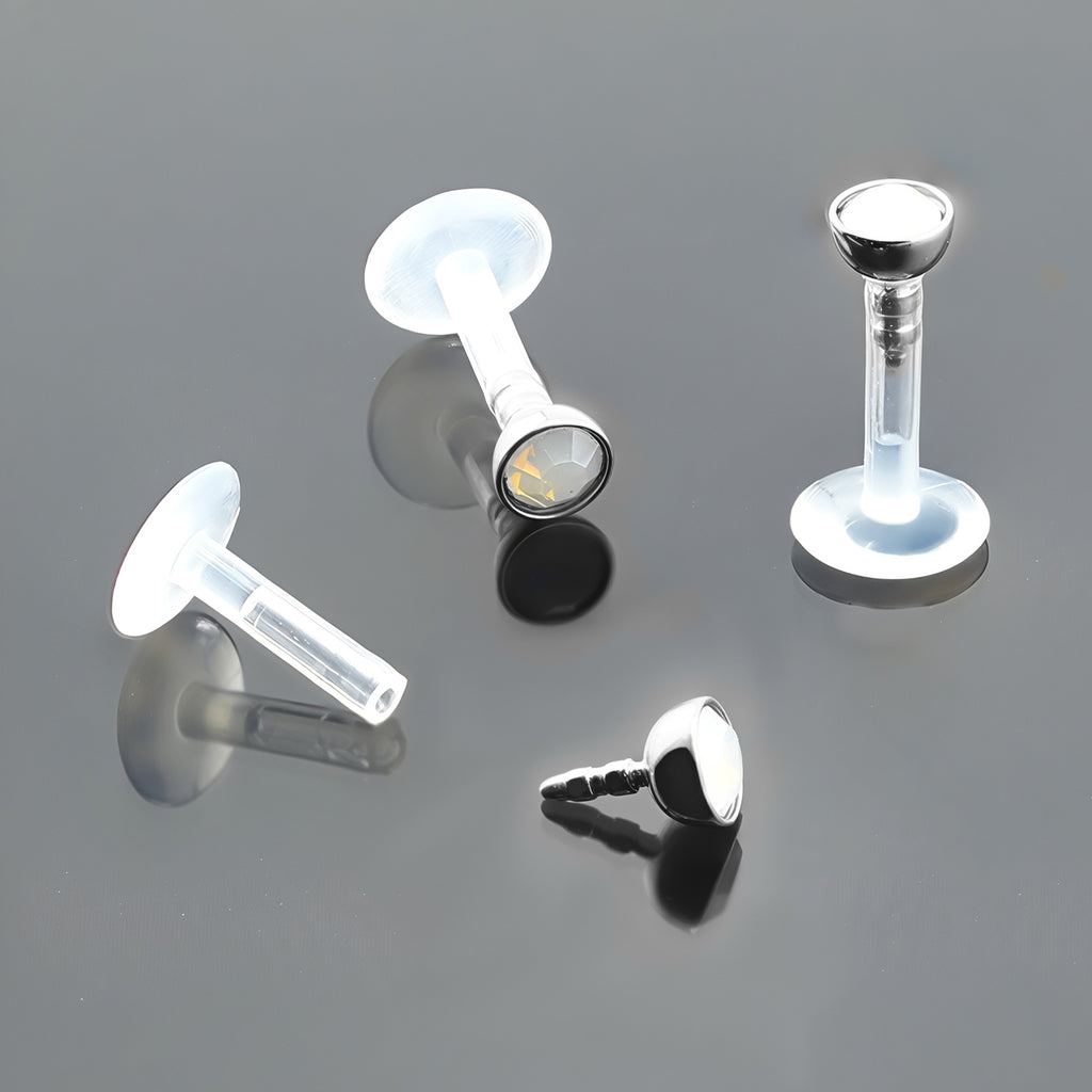 Push-in System mit Bioflex Labret und Steel 316L Aufsatz und 3mm Opal Kristall in Weiss. Ideal zum Wiederverkauf und zur Kombination mit anderem Push-in Zubehör der selben Stärke.