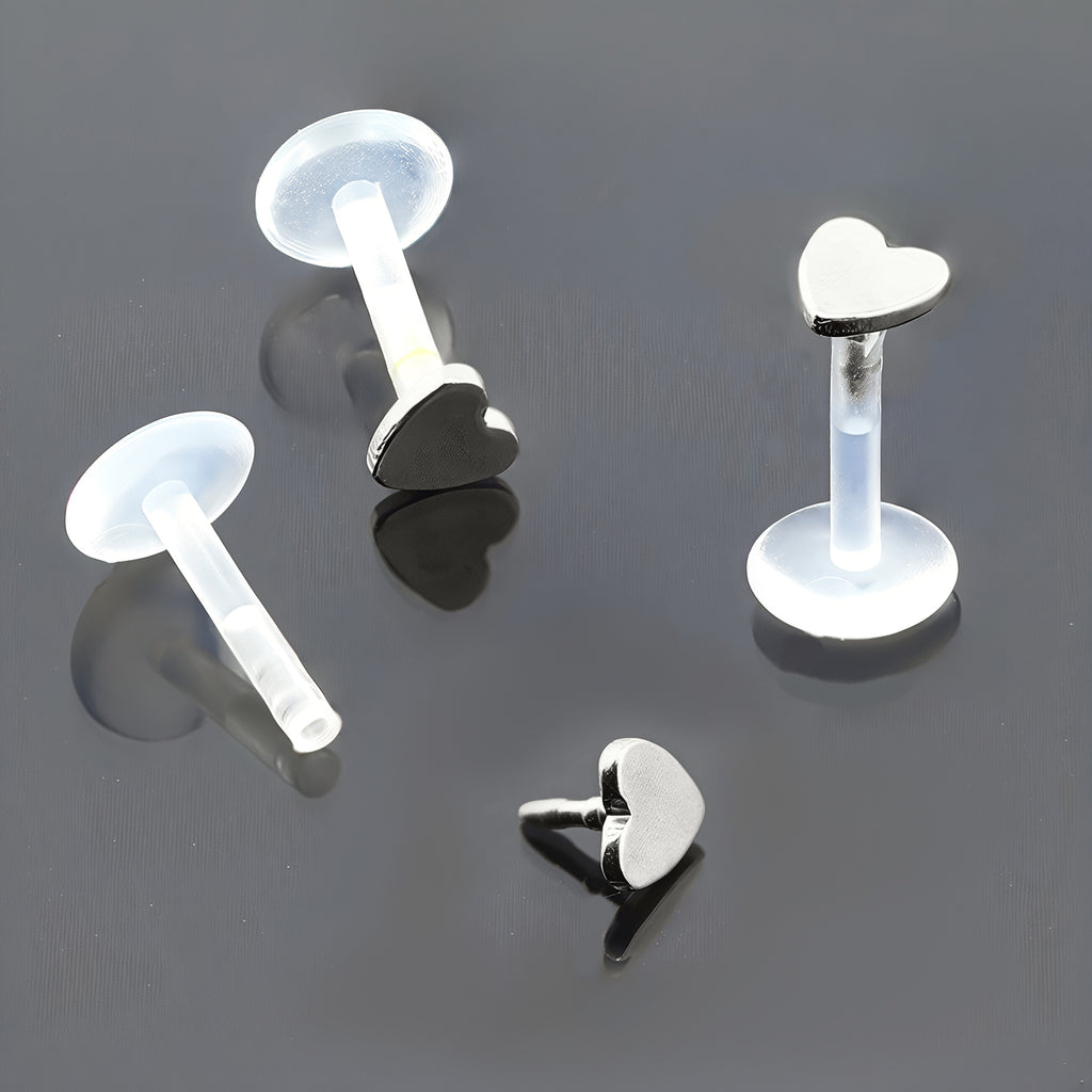 Push-in System mit Bioflex Labret und Steel 316L Aufsatz im Herz Design. Ideal zum Wiederverkauf und zur Kombination mit anderem Push-in Zubehör der selben Stärke.